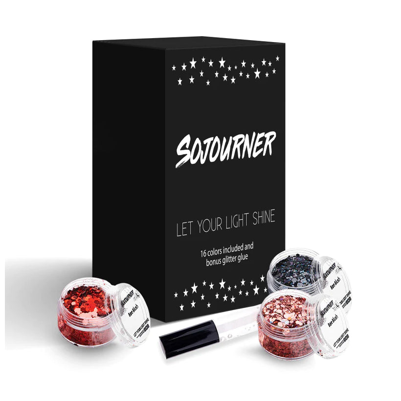 16 pack + 1 glitter glue Chunky Cosmetic Holographic Glitter | Body, Face & Hair Safe
