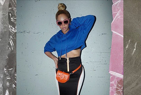 Bow down to her highness as Queen B gives the fanny pack a rock n’ royal look. Paired with a cobalt blue cropped jumper and waist-cinching pencil cut skirt with an athleisure twist, Beyoncé adds a punch, literally and figuratively, to her look with a vibrant, punchy-hued fanny pack.